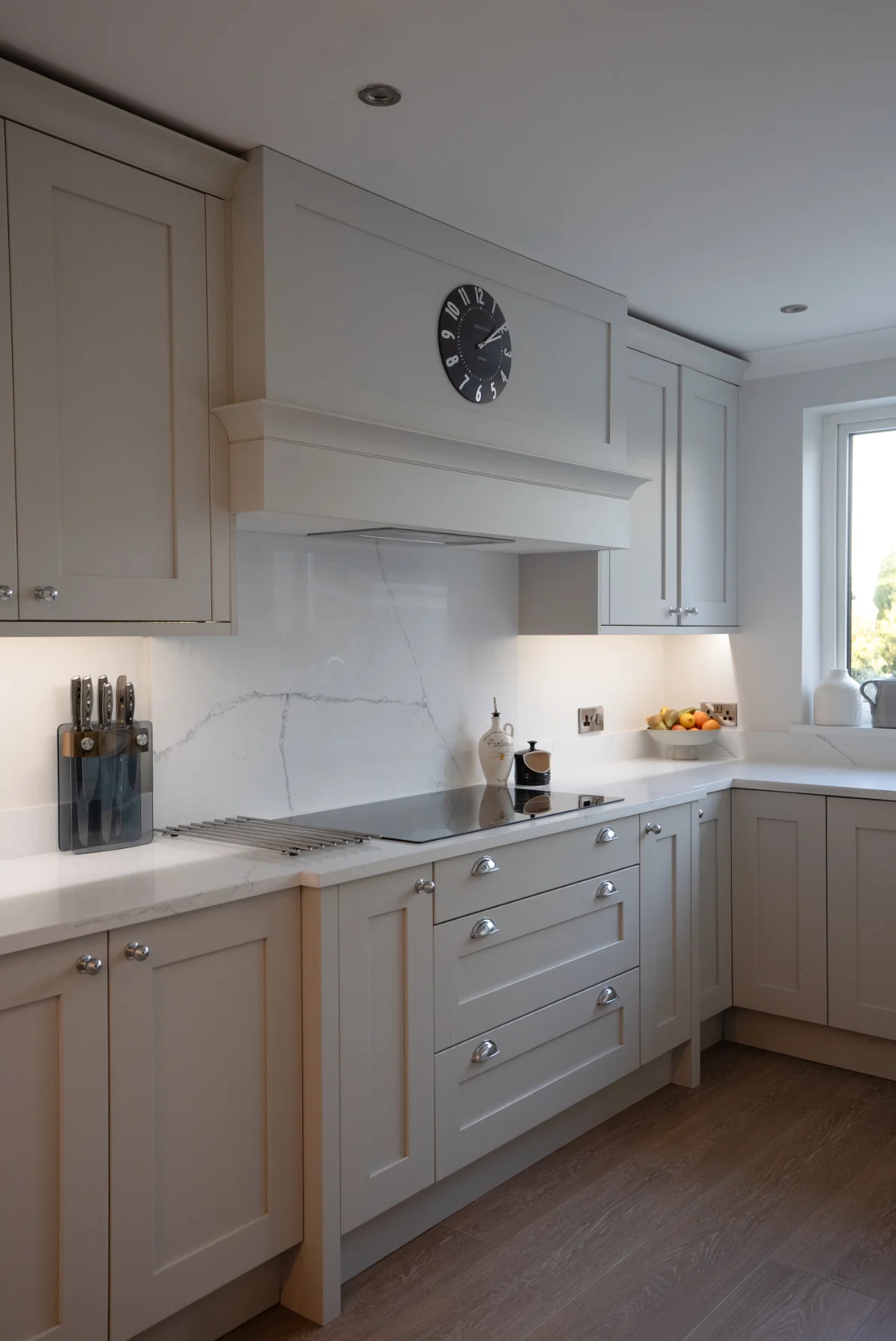 To deliver on this brief, we opted for a classic Shaker-style kitchen, enhanced with carefully considered design elements to give it a refined and stylish edge.